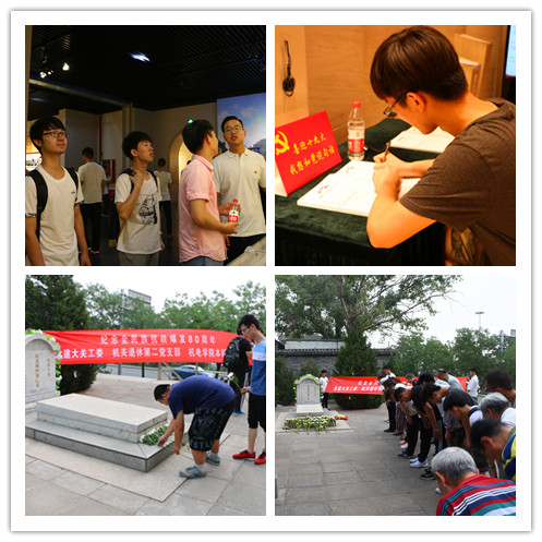 7月1日,在纪念建党96周年、纪念香港回归20周年的特殊日子里,机电学院本科生党支部与机关退休第二党支部再次携手,以纪念全民族抗战爆发80周年为主题开展爱国主义教育活动,铭记中华民族反抗外来侵略、保家卫国的抗战历史,传承团结一心、奋发图强的爱国主义精神,培育社会主义核心价值观。此次活动分为三部分,一是参观卢沟桥抗日战争纪念馆,二是祭拜赵登禹烈士墓,三是新老党员座谈。